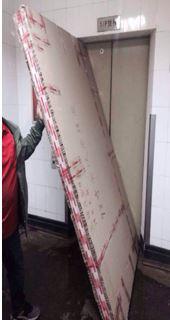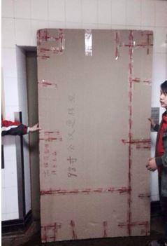 進了樓梯,竹杠用不上,完全靠雙手兜底抬,空間不夠,設備快一人高,不好下力。