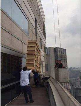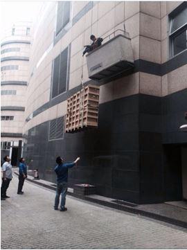 咬牙堅持,曙光就在前方,汗如雨下的高端突擊隊終于順利將設備抬進35層會議廳。